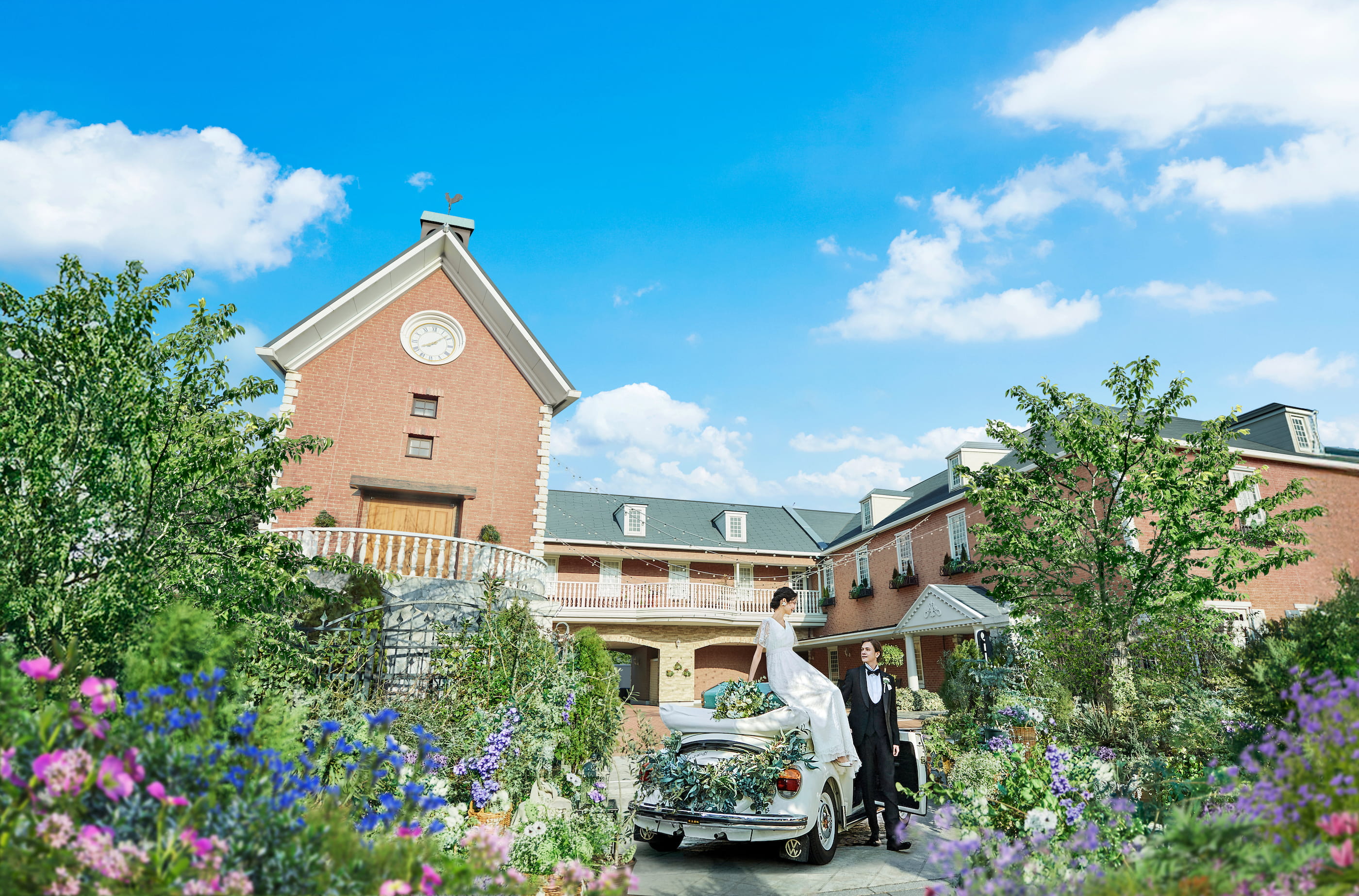 会場は緑に囲まれた静かな環境に位置し、自然の美しさを感じながら特別な一日を過ごすことができます。美しい庭園は四季折々の表情を見せ、季節ごとに最適なシーンを演出してくれます。