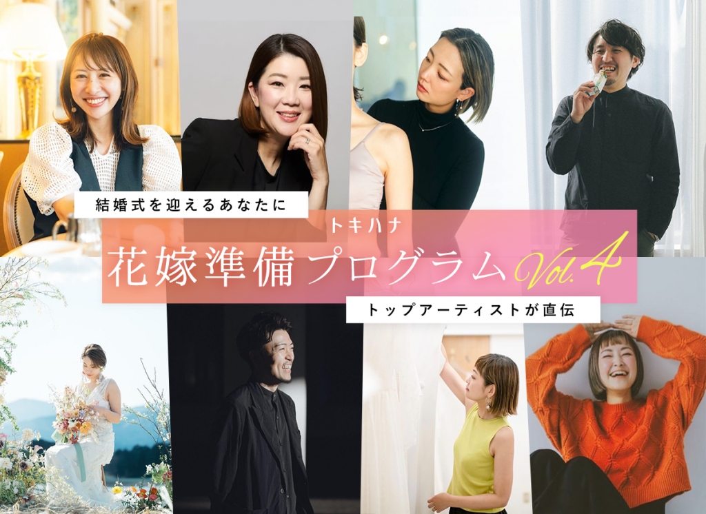 この期間も自分が理想とする結婚式の準備が楽しく進められるようにトキハナでは、各分野のトップアーティスト直伝の特別な体験やワークショップに参加できるスペシャルなプログラムを用意しました。