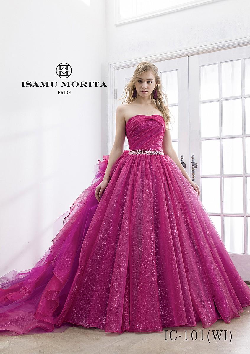 3.[ISAMU MORITA]ビビッドピンクのグラスオーガンジー×ラフィネオーガンジードレス