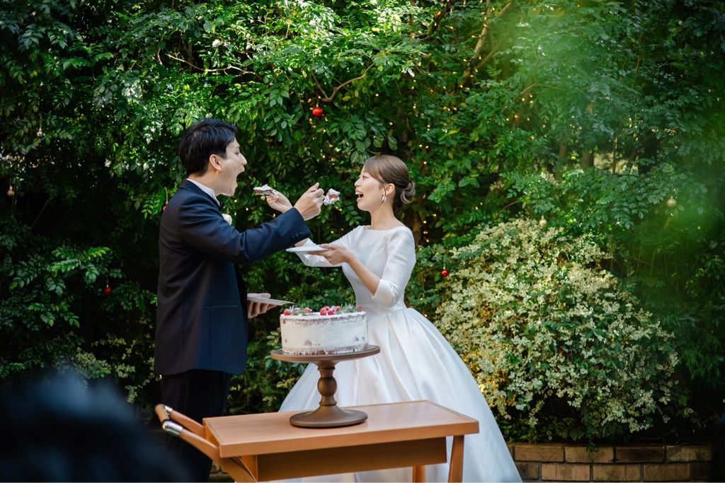 新郎の母特製の唐揚げや新婦の妹が考案したデザートも提供され、「料理が本当に美味しかった」「開放的なガーデンでの食事が楽しかった」との声が多く、心温まる素敵な一日となりました。