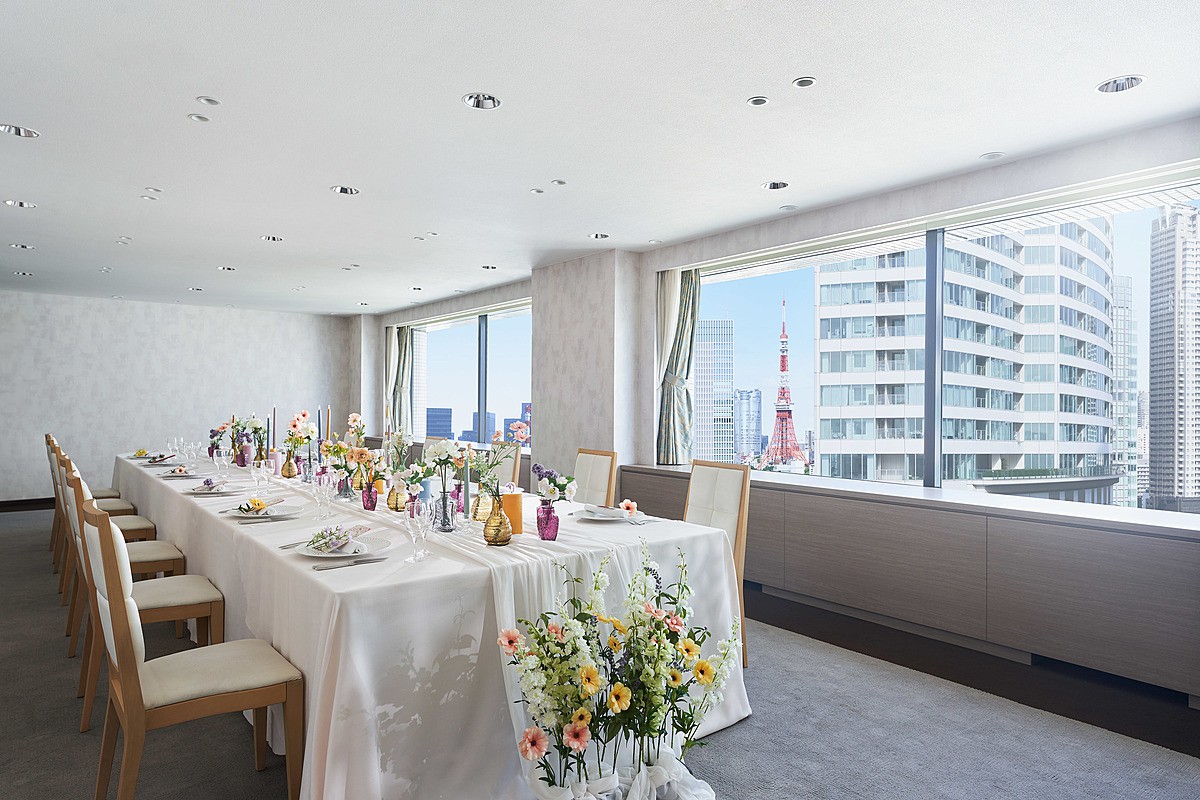 最上階からベイエリアを一望できる「ブライトコースト(収容人数10名~40名)」や、ワンフロア貸し切り制の「天平(収容人数40名~130名)」、落ち着いた雰囲気の和室「武蔵野(収容人数6名~20名)」などから招待するゲストの人数や好みに合わせてお選びいただけます。