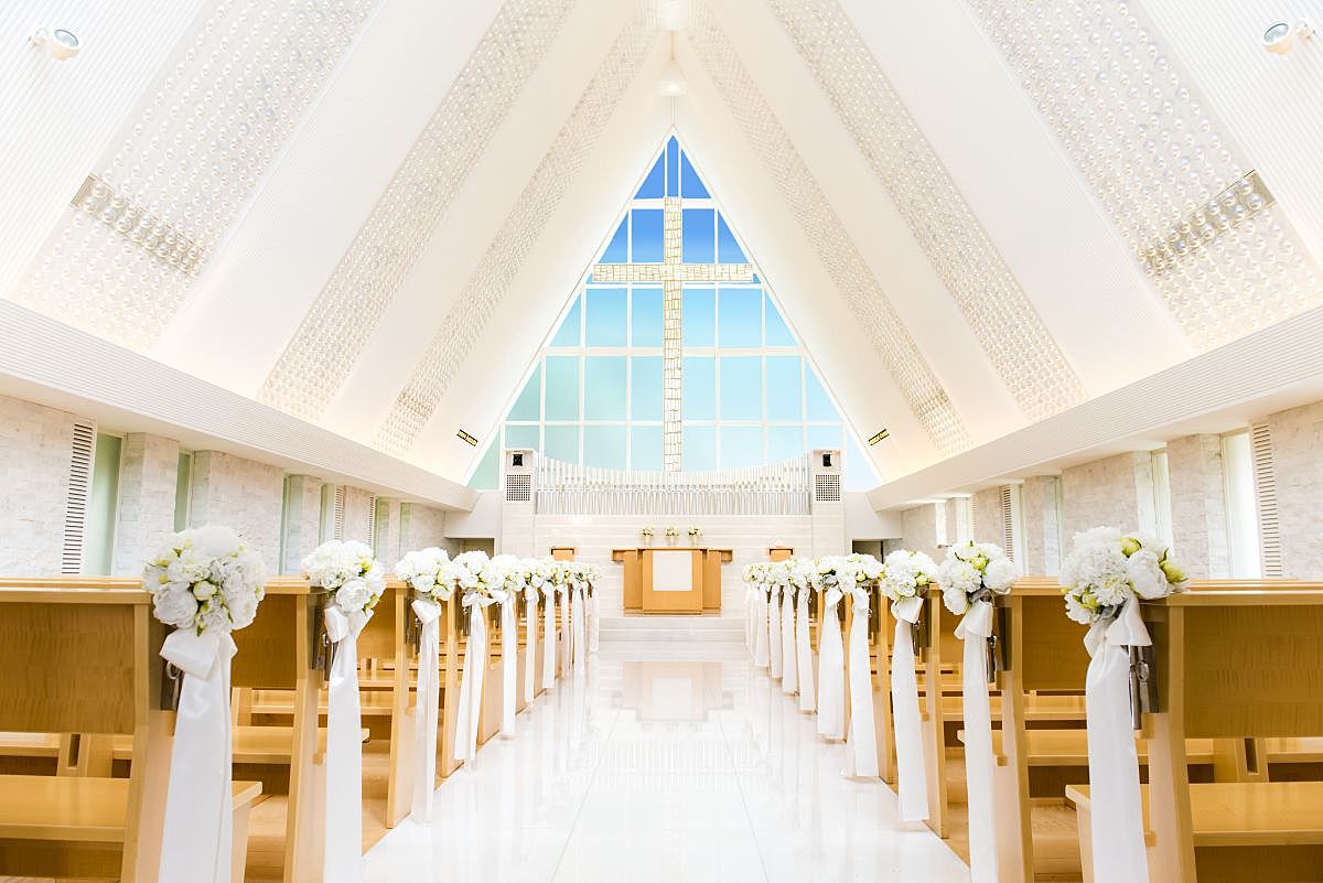 スワロフスキー・エレメントの敷き詰められたバージンロードが印象的な館内のブライトチャペル(収容人数64名)か、一千年の歴史を誇る提携神社・芝大神宮のどちらかで挙式を行うことが可能です。