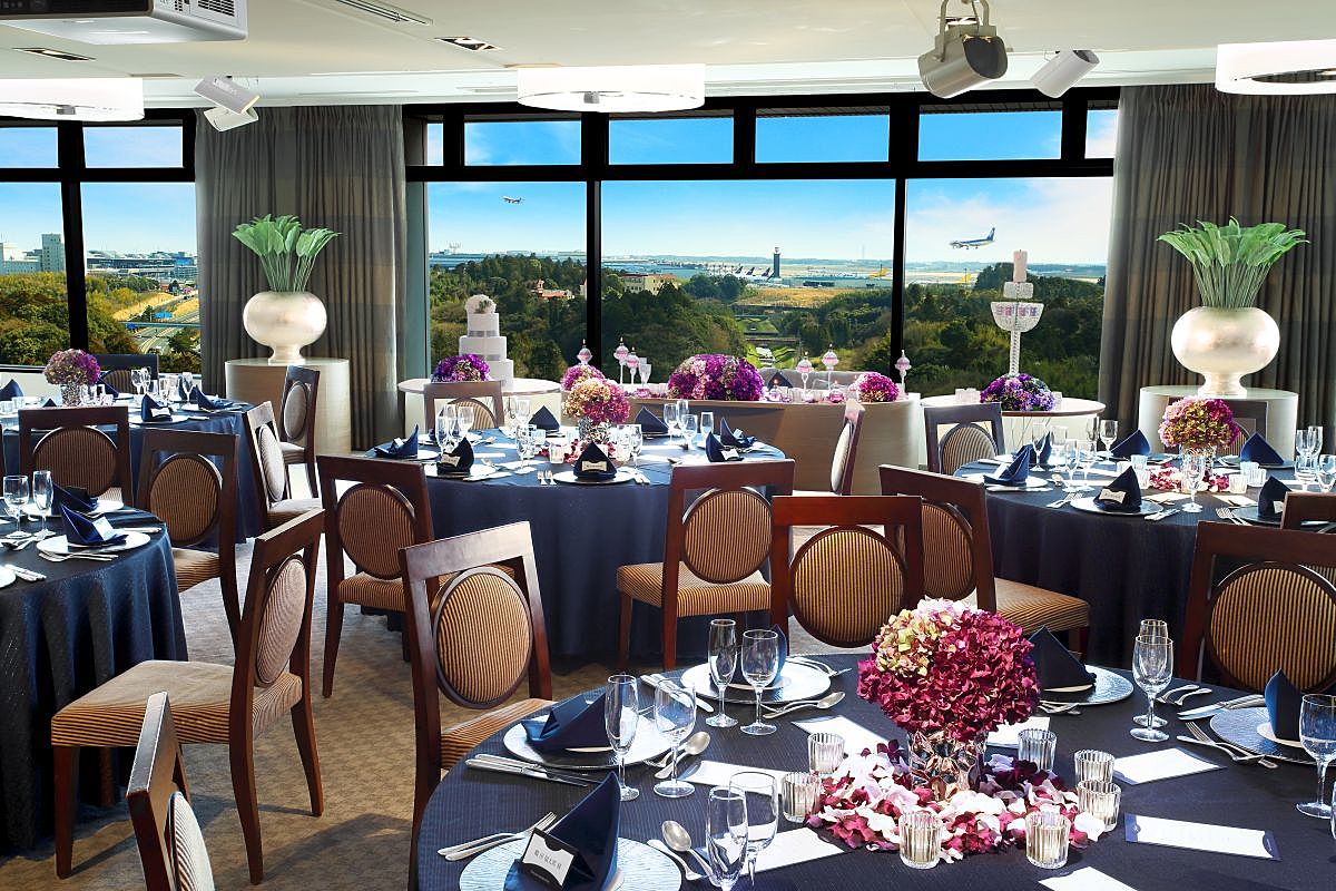 披露宴会場は天井高6.5メートルの広々とした「オーキッド(収容人数55名~240名)」や、飛行機の離発着が見える「イーリス(収容人数5名~80名)」など多彩な会場を4つ完備。