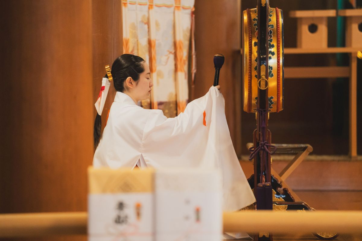 雅楽の生演奏と巫女の舞で彩る神前結婚式。