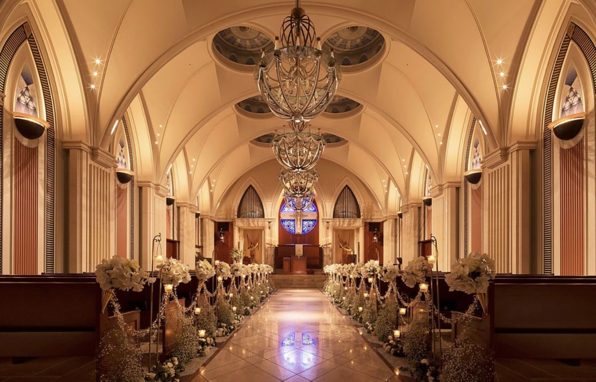 シャンデリアの輝きや高い天井、そして美しい音響が、結婚式を壮大に演出します。