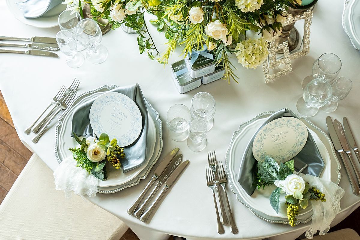 ホワイトカラーを基調としたナチュラルな雰囲気の空間なので、ホワイト&グリーンを多用した装花やアースカラーのテーブルコーディネートがよく似合います。