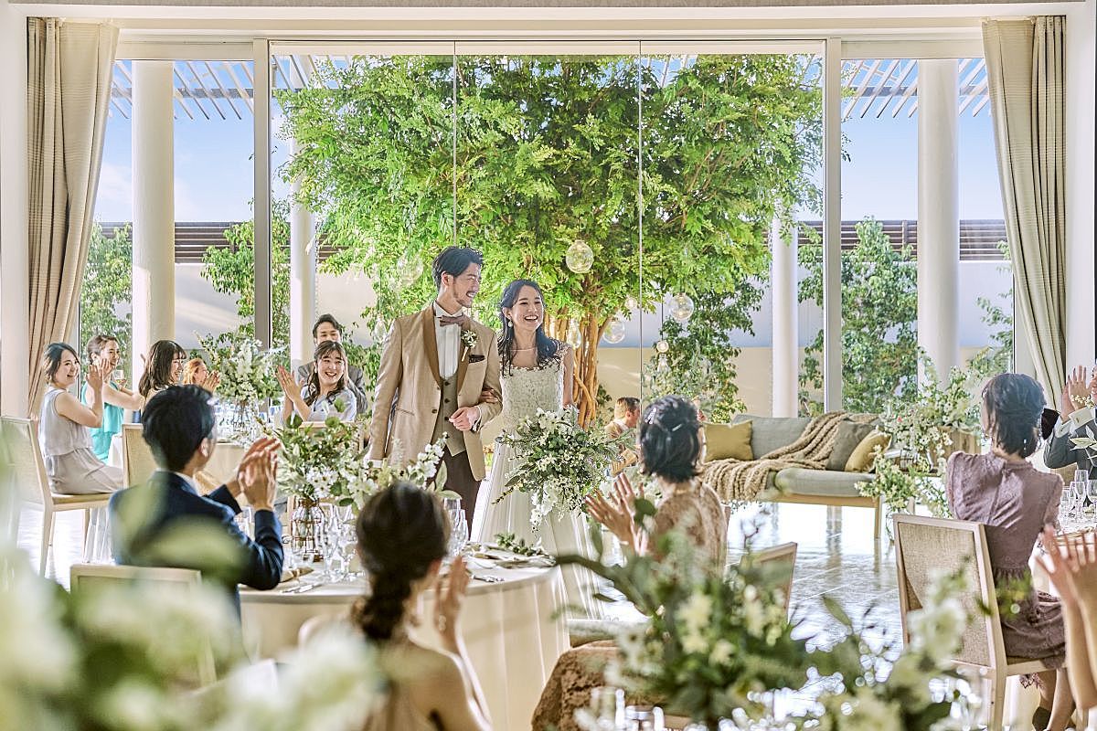 リゾート感あふれる空間かつ、ゆったりとゲストをお出迎えすることのできる開放的な空間なので、新郎新婦はもちろん、ゲスト一人ひとりが特別感に満ちた心地よい一日を過ごすことができますよ◎