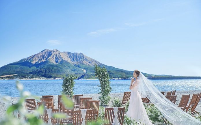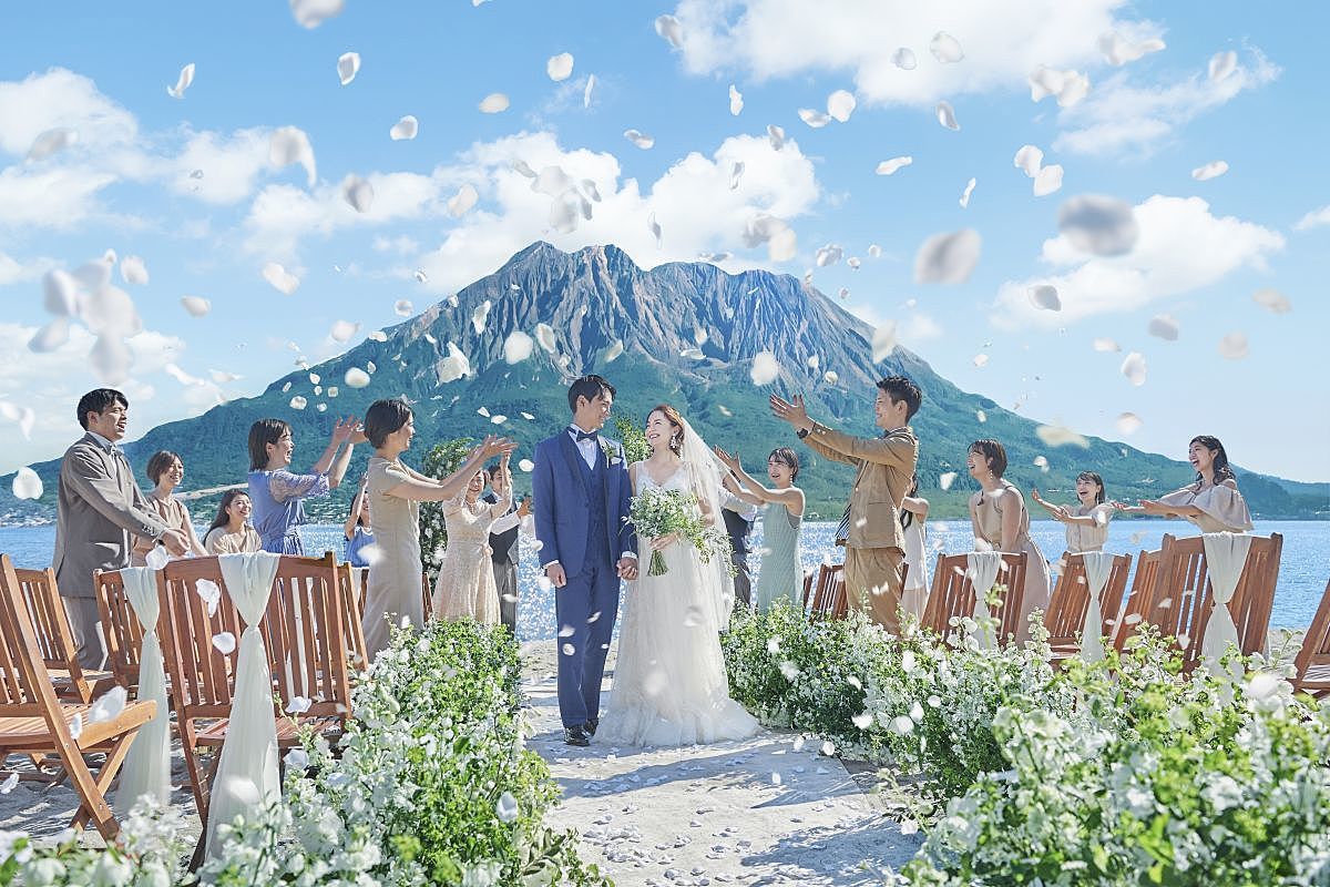 鹿児島のシンボル、桜島も望める最高のロケーションにあり、その非日常の佇まいがリゾート気分を盛り上げてくれると評判の結婚式場です。