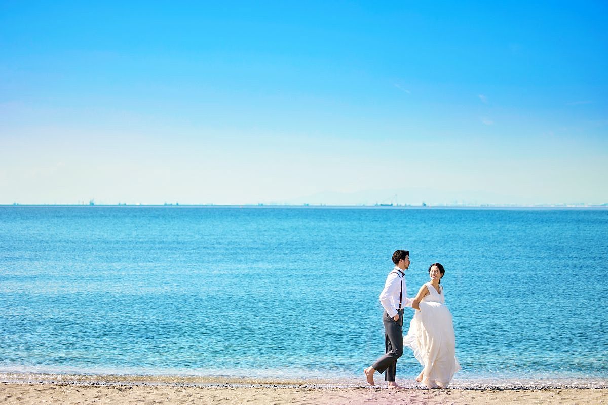 純白のウエディングドレスとのコントラストは、新婦の姿をより美しく引き立たせ、まばゆい陽光がさらなる輝きを与えてくれます。