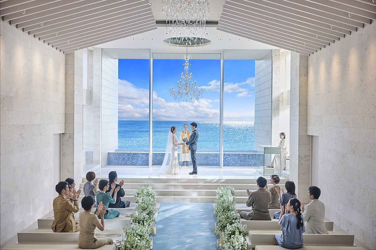 見渡すかぎりのオーシャンビューで、海と空のブルーに彩られた「グレイスヒル・オーシャンテラス」のチャペル。