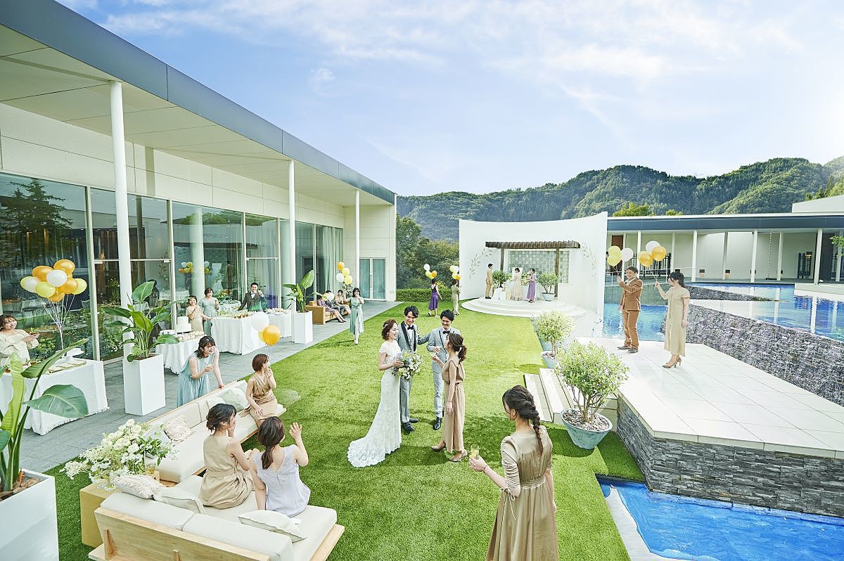 美しい緑と空に包まれた約2000坪の広大な敷地を貸切にしたゲストハウスウエディング「ブリーズレイ・プライベートテラス」。