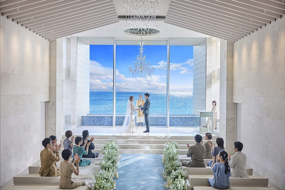 挙式会場は、水平線を一望する「オーシャンブリーズチャペル(収容人数88名)」。