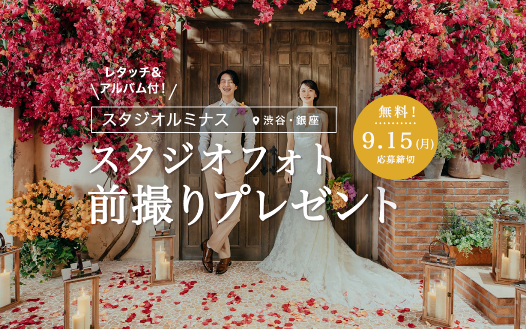 今回のスタジオルミナス フォト無料プレゼントキャンペーンは、結婚式場をまだ決めていない花嫁を対象に、無料でルミナスのスタジオフォトが体験できるチャンス!