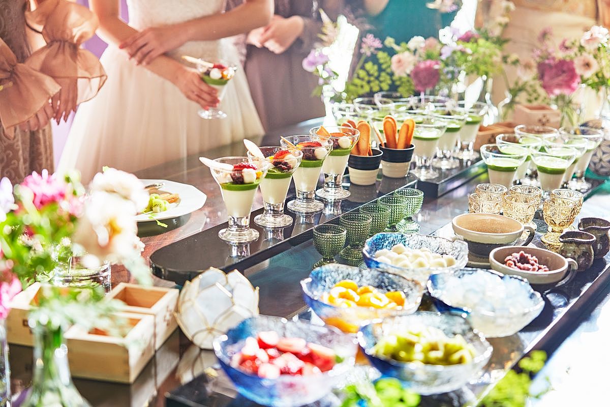 ゲストと歓談を楽しみながら、色とりどりの和風デザートを楽しむ演出も叶います。