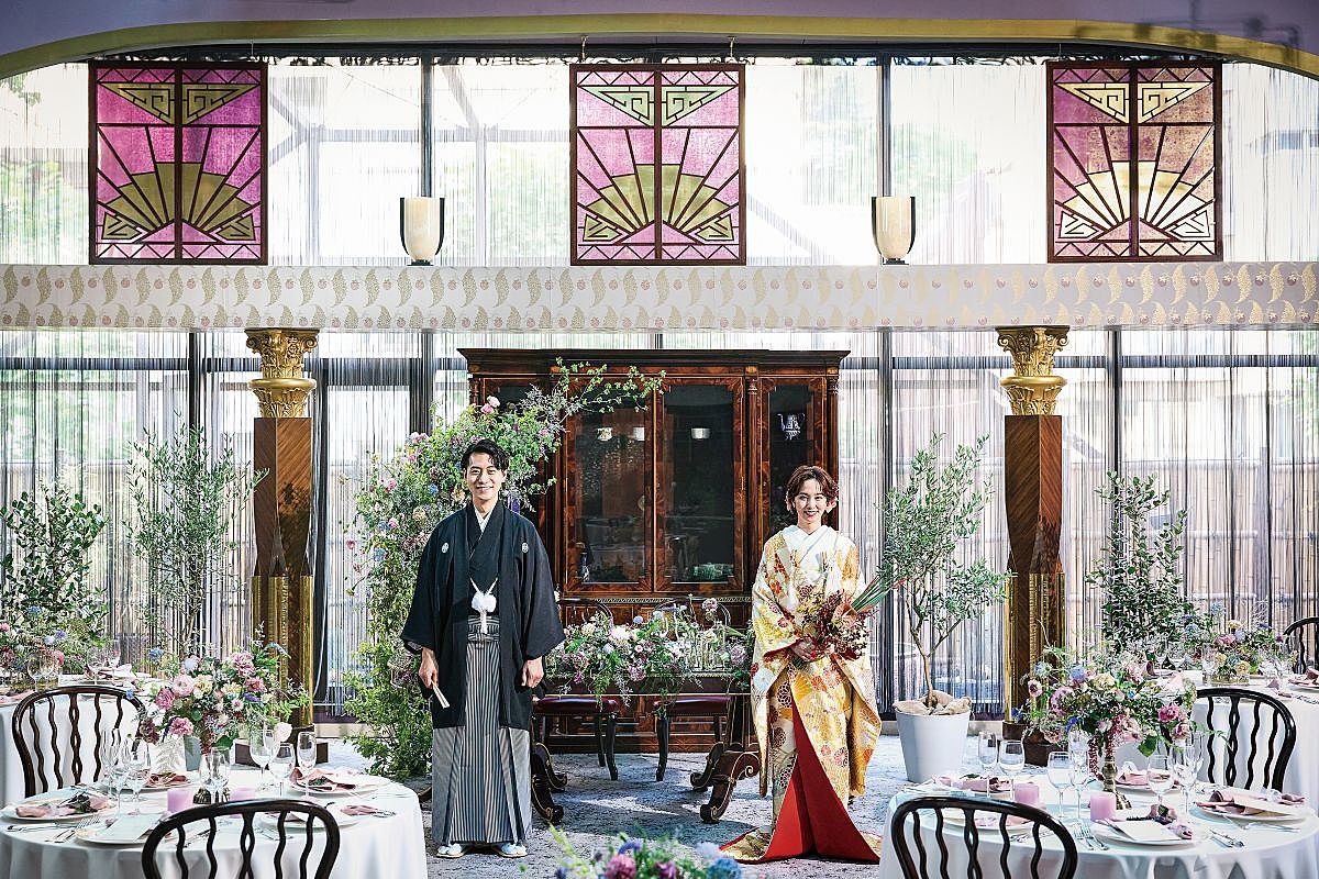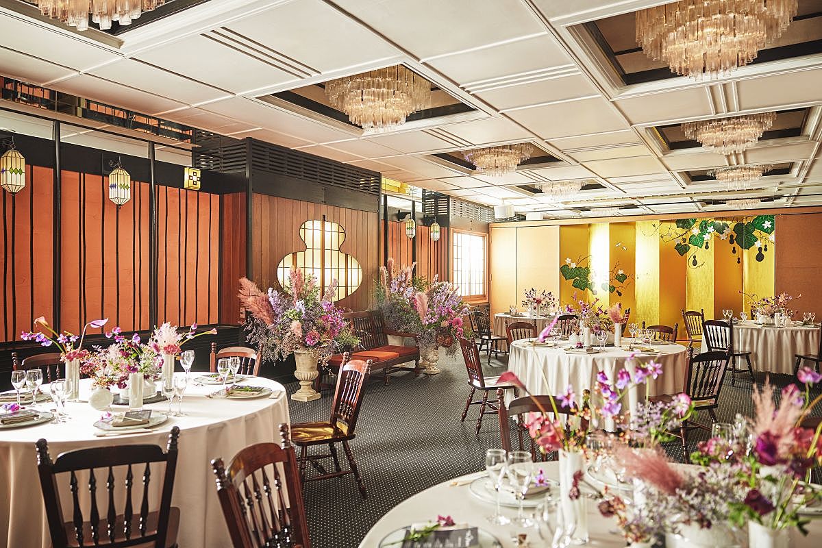 「結~Yui~」は乃木邸のメインダイニングをイメージしてつくられた、明治・大正ロマンの雰囲気を色濃く感じる披露宴会場です。