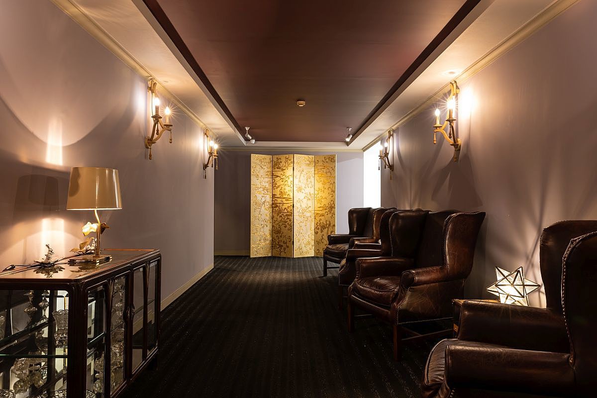 深紅のカーペットと煌めくシャンデリア、重厚なつくりの暖炉上に飾られた装飾品などアンティークな調度品に囲まれた、気品漂うクラシカルな空間となっています。