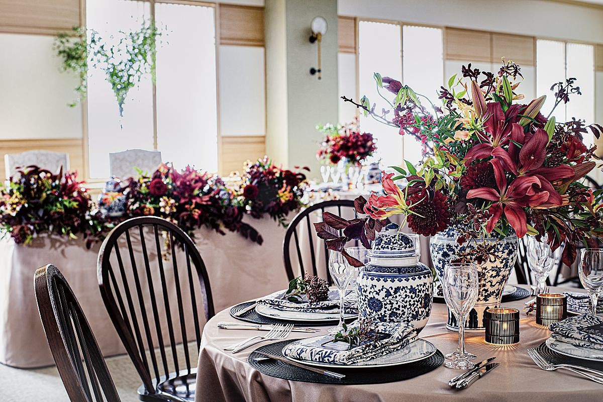 「乃木會館」では、挙式を行う乃木神社のすぐ隣に披露宴会場を併設。和装も洋装も美しく映える、和魂洋才テイストな披露宴会場を7つ完備しています。