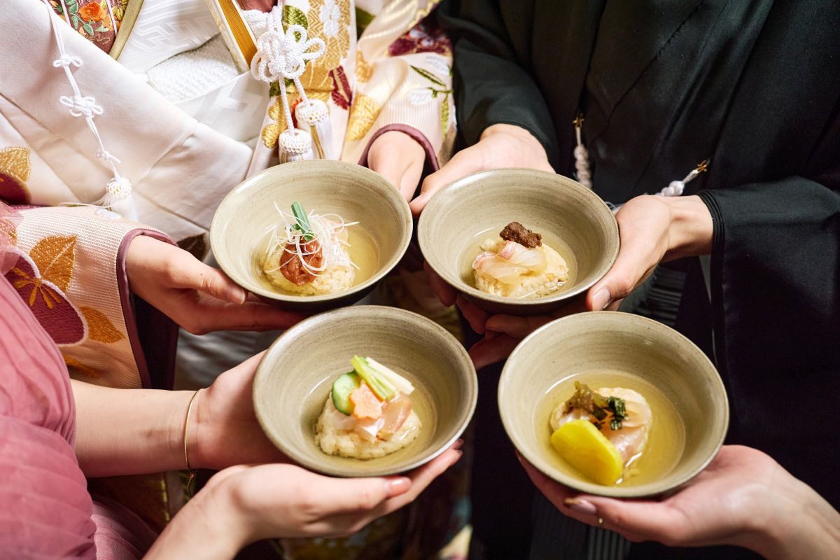 披露宴でゲストに振る舞う料理は、旬の食材を使った季節の彩りを感じる鮮やかな盛り付けの和食のコースをご用意。