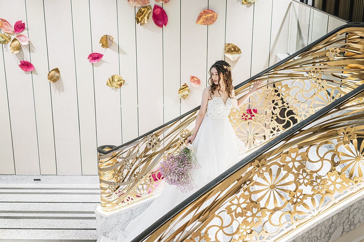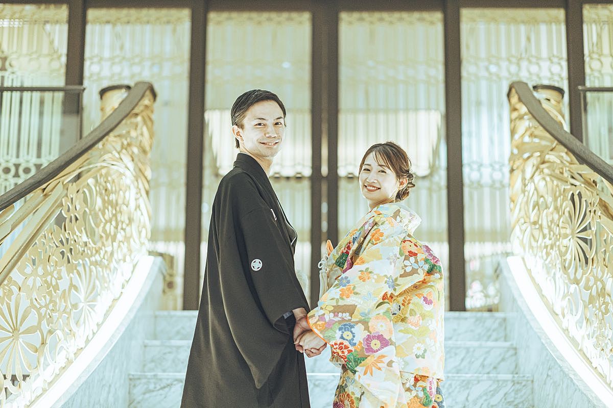 和装と相性のいいゴールドがコンセプトカラーの会場なので、和の結婚式にもぴったり。
