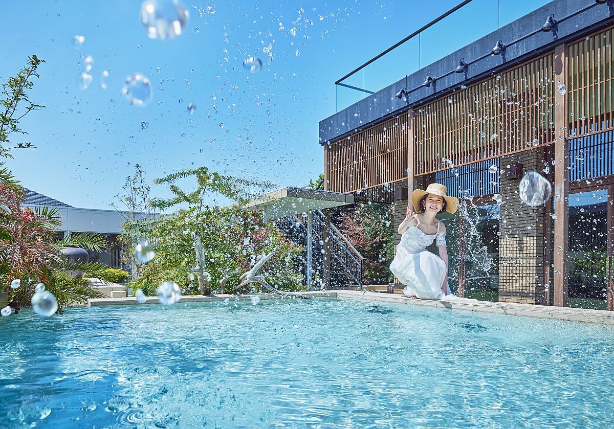 「会場の雰囲気:4.5」というスコアが示す通り、光・空・水・緑を感じる空間は、ゲストに非日常感をプレゼントする最高のおもてなしに。
