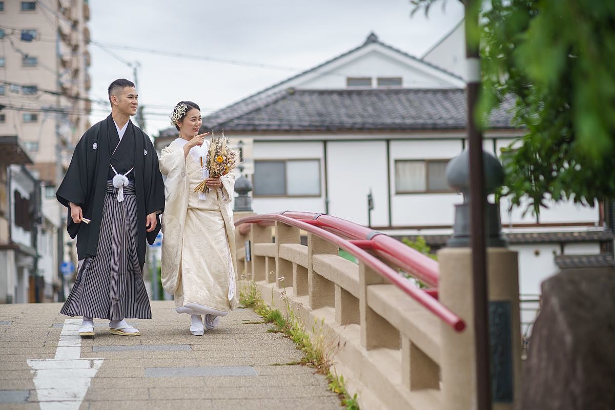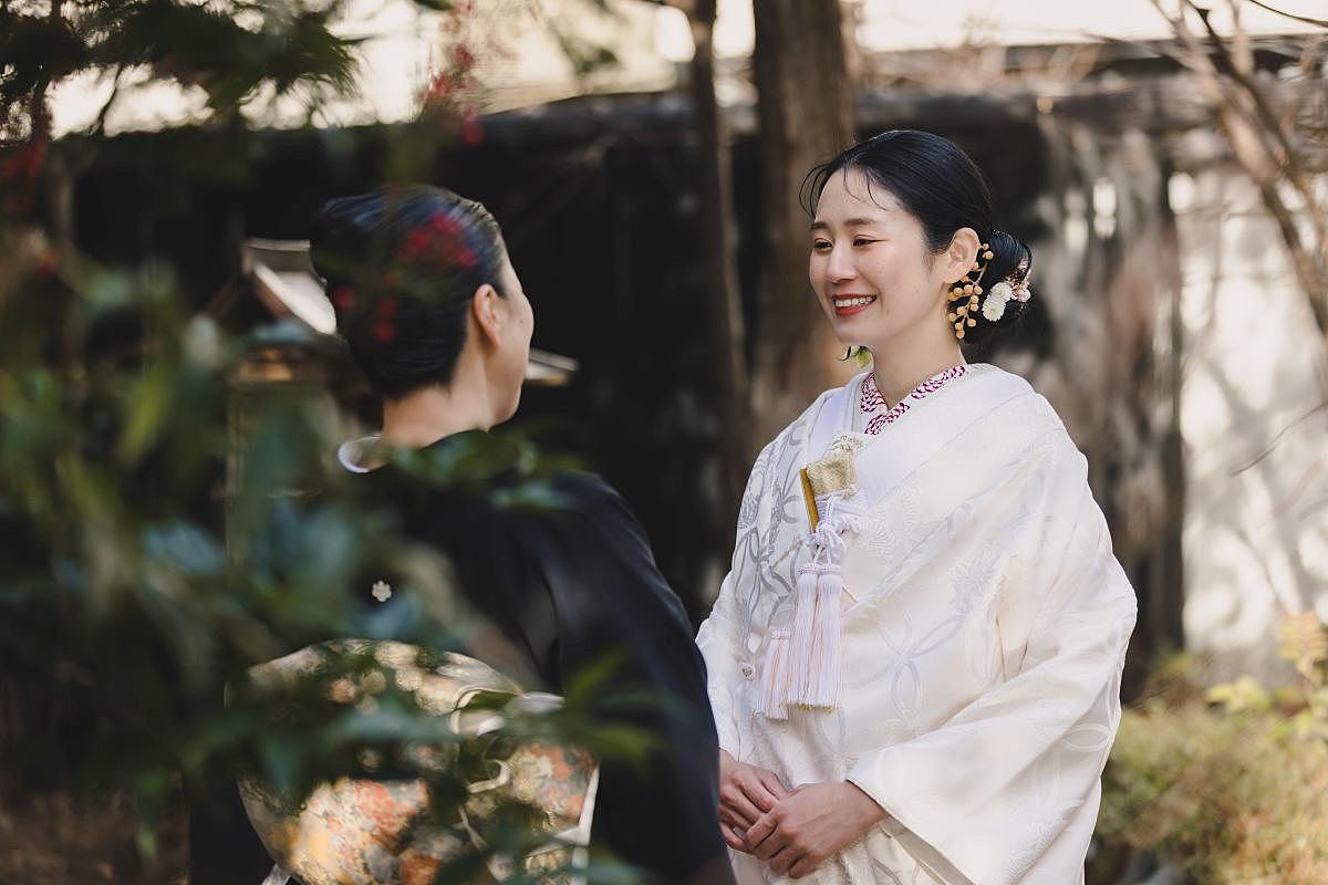 多くの新郎新婦が、当日は畳の部屋で支度した後、お庭や敷地の外に出て2時間ほどかけてゆっくりとロケーションフォトを行うのだとか。