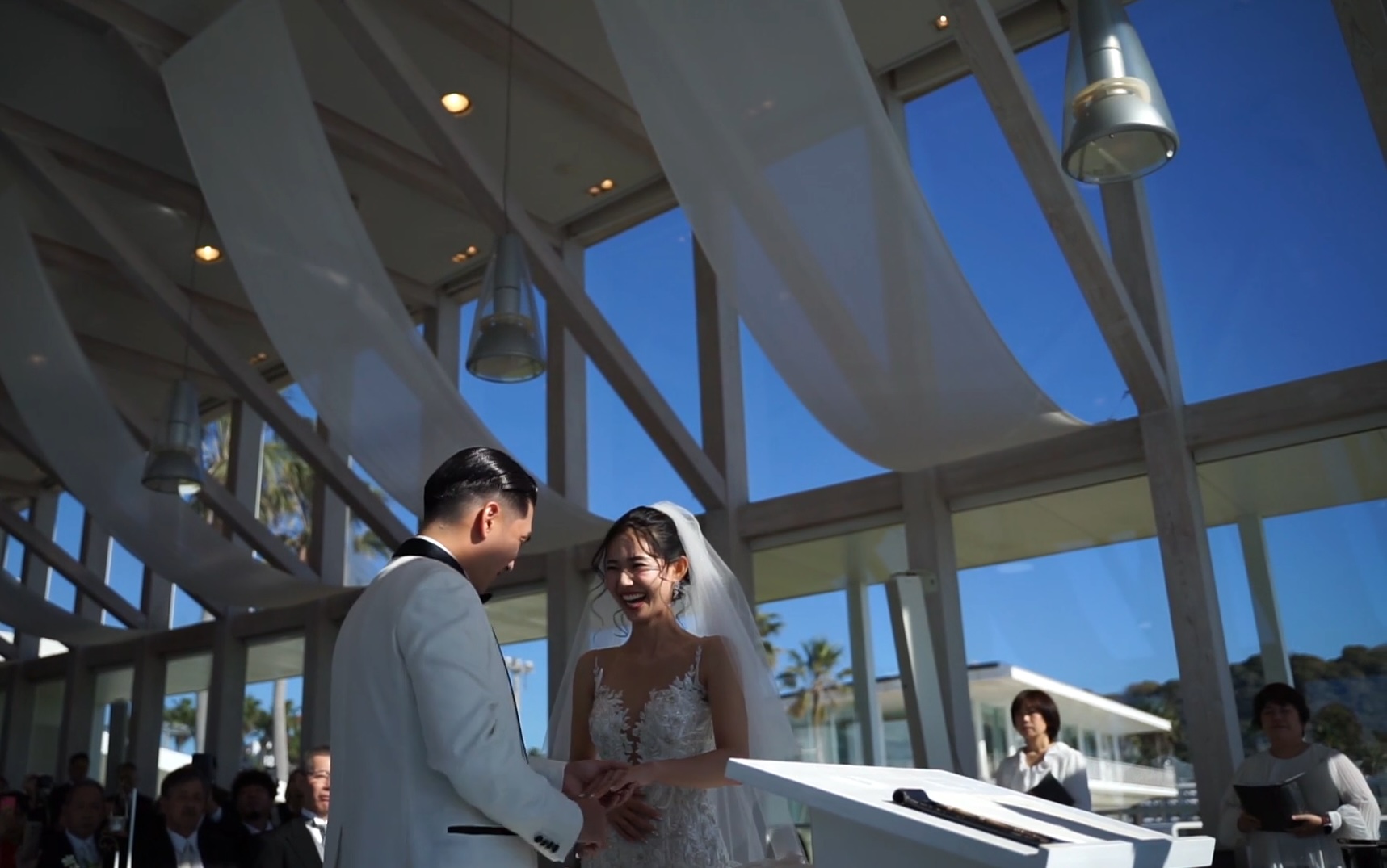 素晴らしいくらいの晴天に恵まれ、海と青空に囲まれての最高なコンディションで挙式をあげられました。