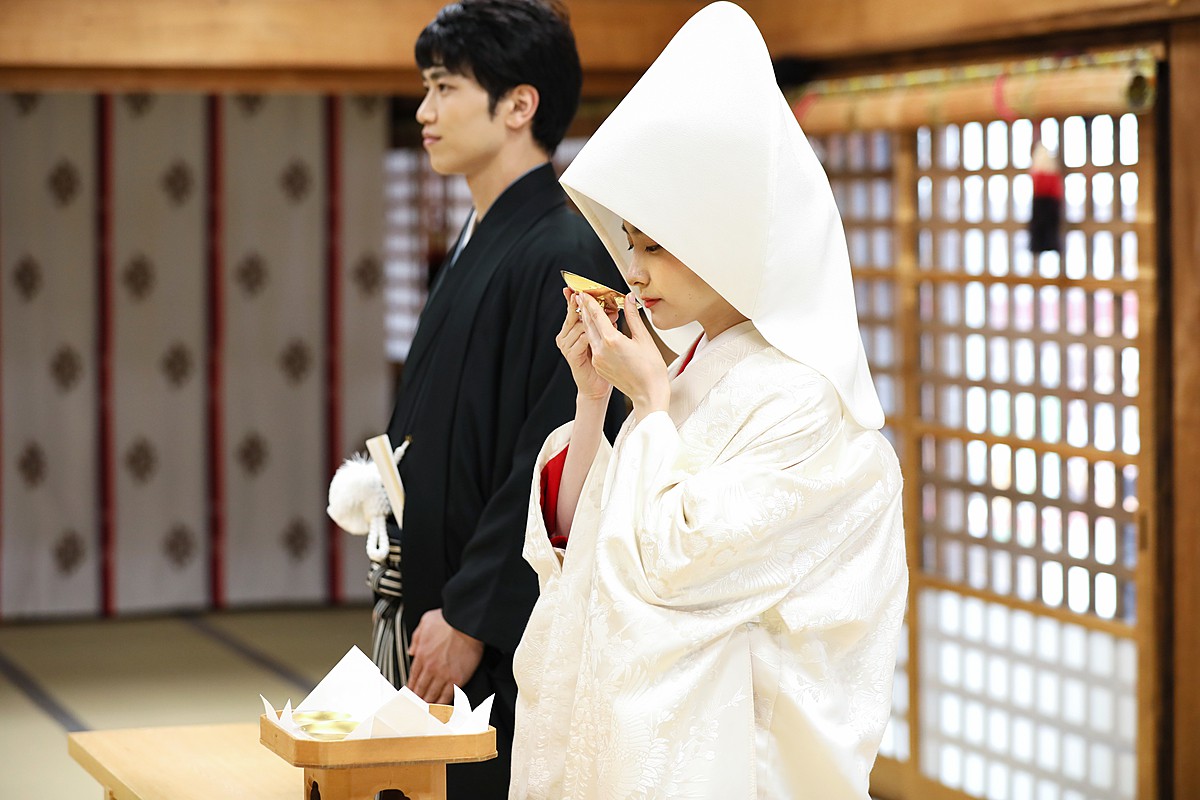 「三献の儀」「玉串奉奠(ほうてん)」など、古式を忠実に継承した内容は、伝統的な挙式を望む二人にぴったりです。