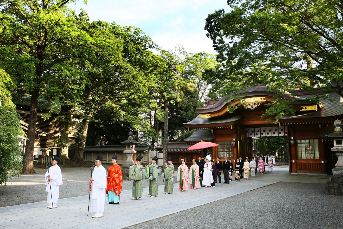 大國魂神社の挙式の特徴は、14名もの神職が携わっているところ。