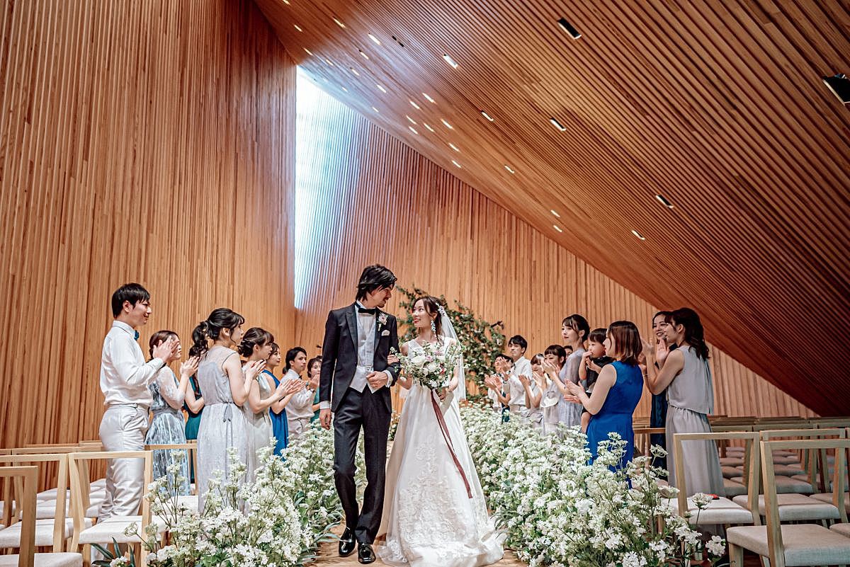 世界的建築家・隈研吾氏が設計したナチュラルなチャペル、リニューアルされたばかりのピカピカの洗練空間で、オシャレでイマドキな結婚式ができると話題の会場です。
