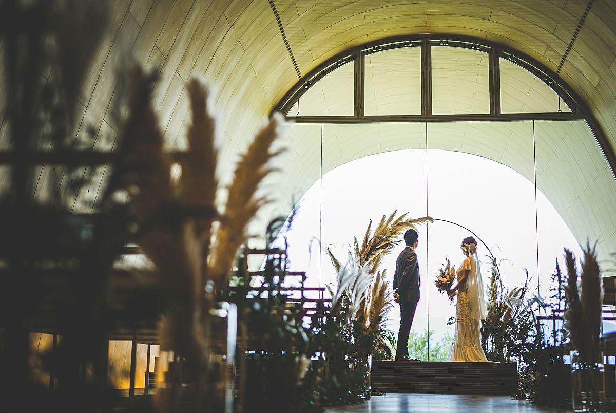 有名建築家が手掛けたこのチャペルは、アーチ型の天井や床、ベンチにはヒノキが使用され、やさしい木の香りと温かみに癒されながらセレモニーを行うことができます。