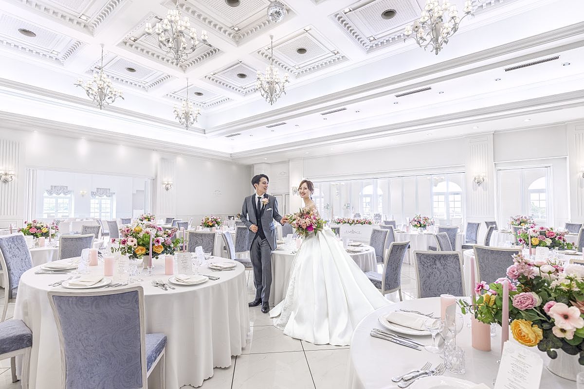 ヨーロッパのお城の舞踏会をイメージした、ピュアホワイトの会場。