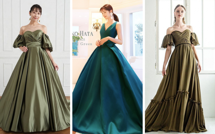 1.秋冬に映える“ダークグリーン色”ウエディングドレスの魅力