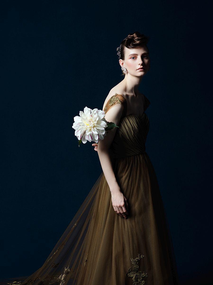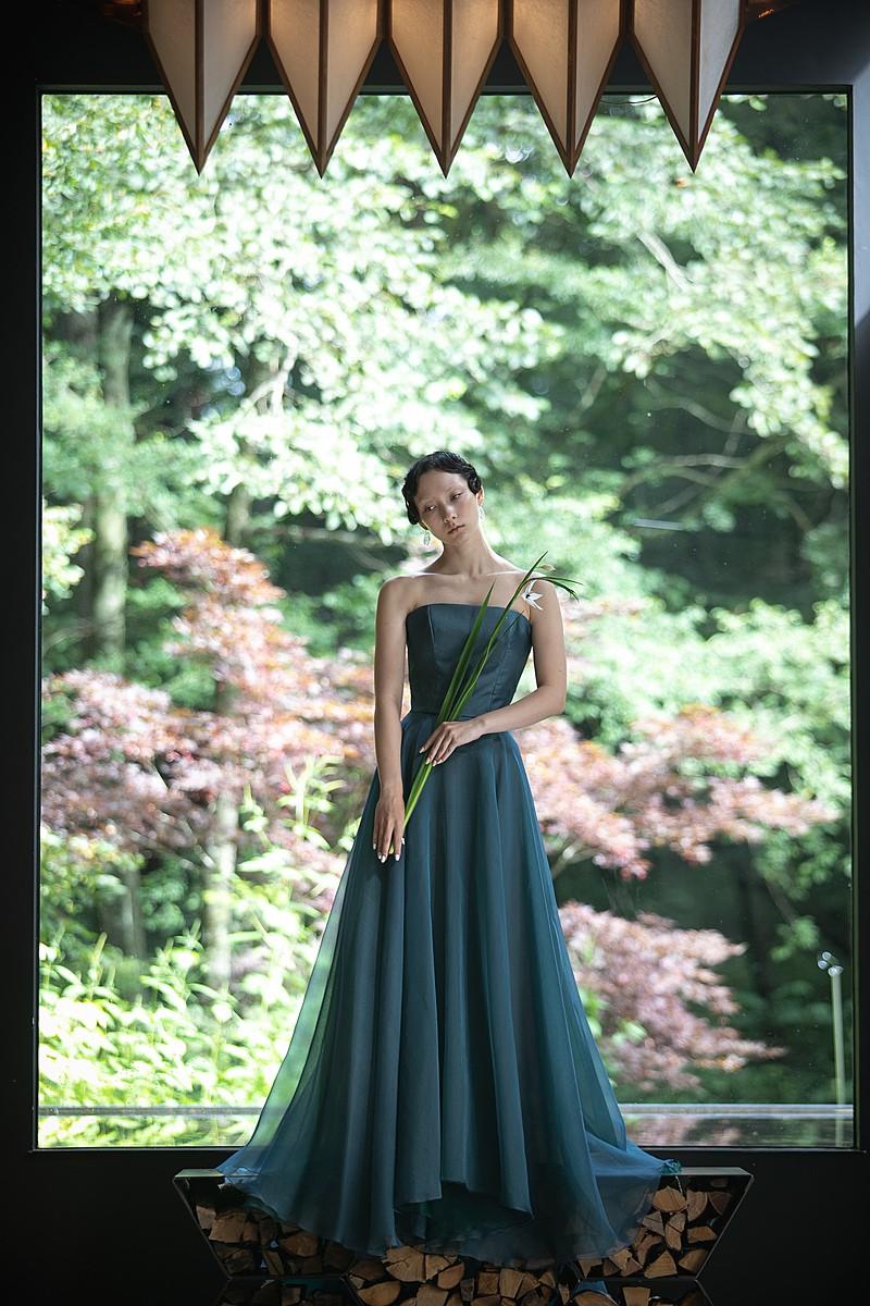 深みと気品をあわせ持つ「ダークグリーン」のウエディングドレス。