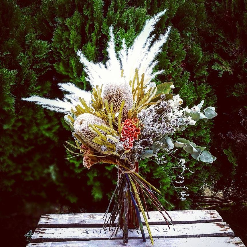 おすすめの花材は「パンパスグラス」「バンクシア」「ケイトウ」「ユーカリ」
