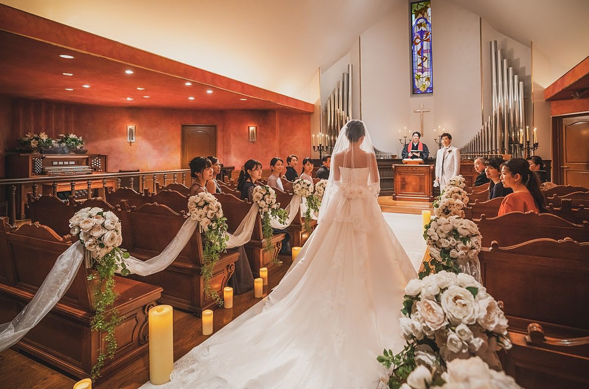 チャペル内は重厚感漂うクラシカルな内装で、パイプオルガンの美しい音が響き渡る神聖な雰囲気の中でキリスト教式や人前式を行えます。