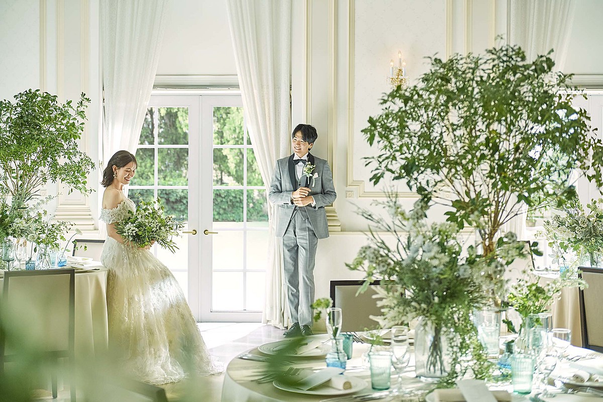 いつも緑が目に映り込むナチュラルな挙式が叶うのは、エヴァウイン小山プレミアムスィーツならではです。