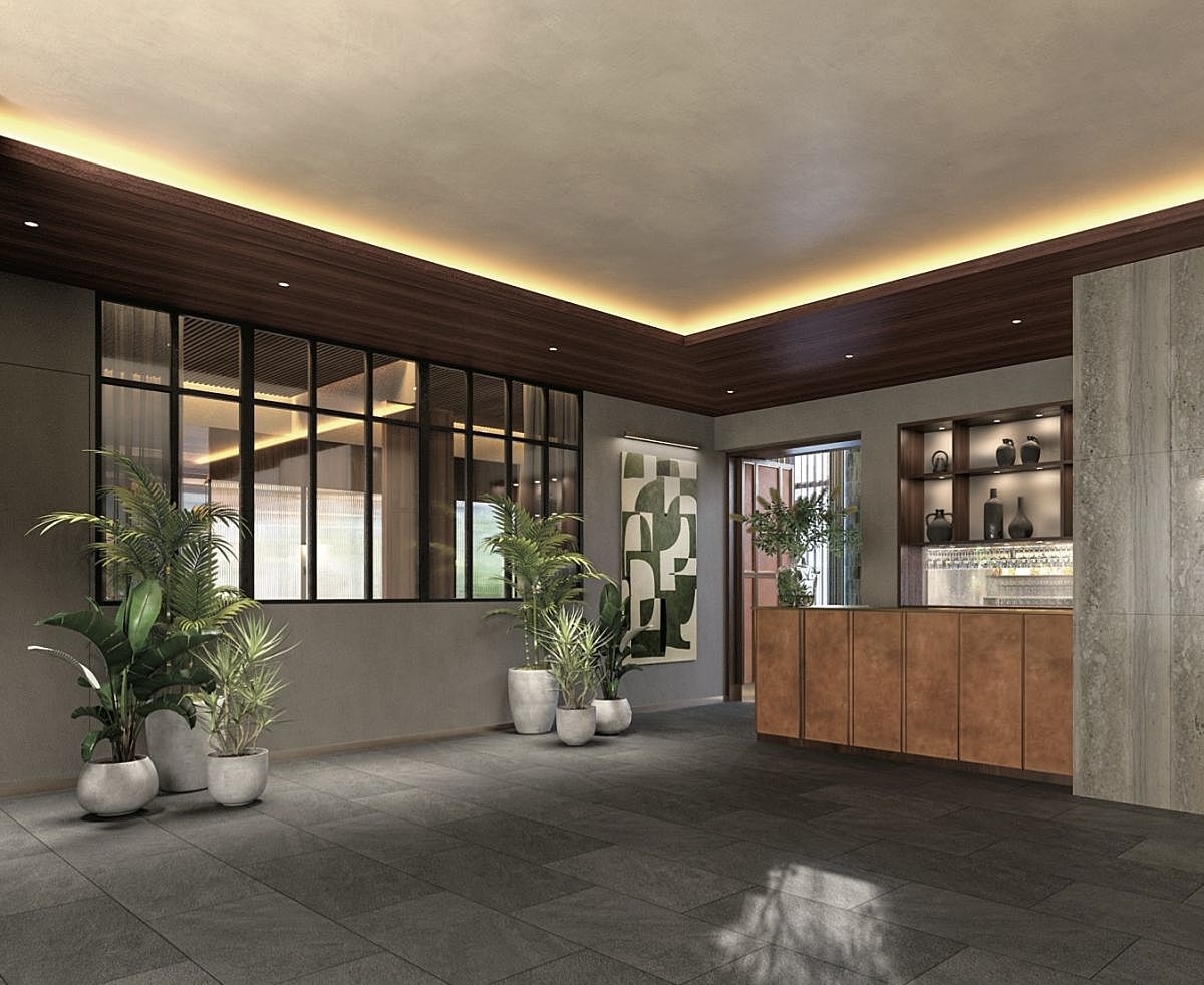 広々としたエントランスをくぐると、ウッド調のロビーがお出迎え。