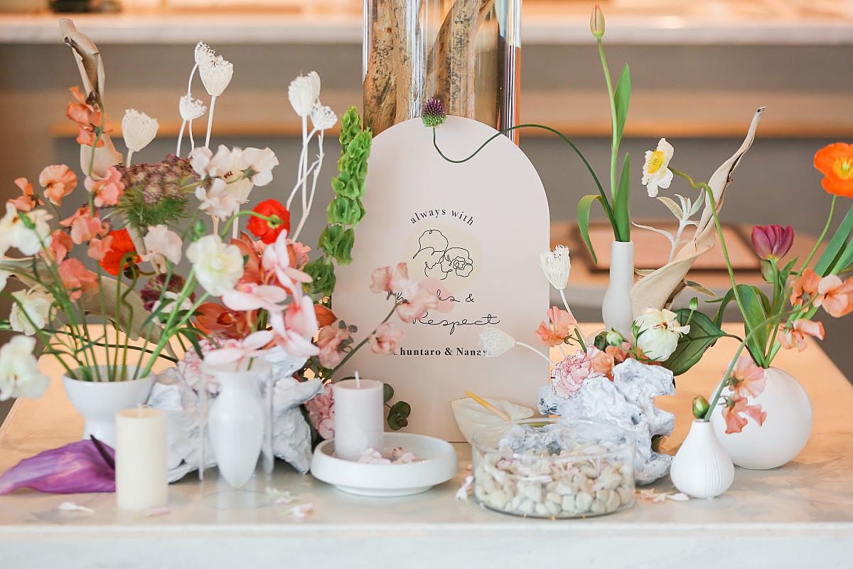 エントランスから二人の世界観で空間を彩れるため、全員が結婚式に没入できるはずですよ。