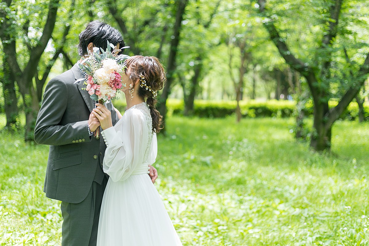 神吉日なので、新緑が綺麗な神社で前撮りをすればいい写真を残せそう。