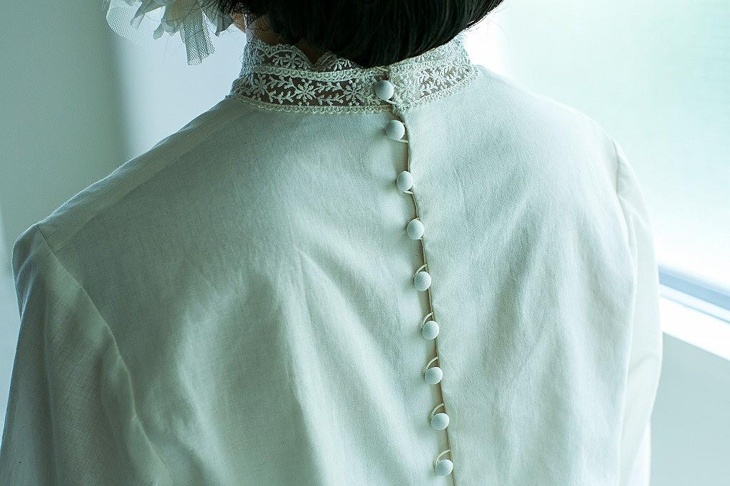また、背中にレースの透け感やくるみボタンをあしらえば、クラシカルの中にも女性らしい抜け感が加わり、後ろ姿まで印象的に。