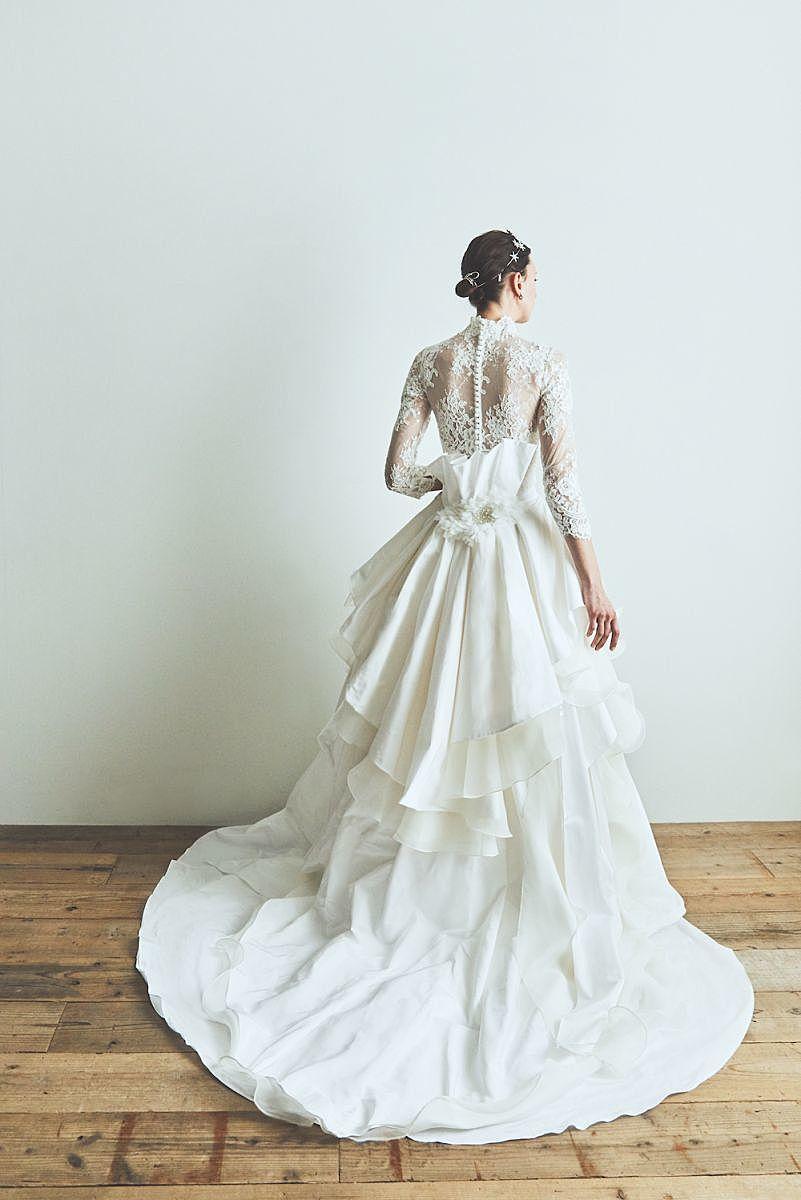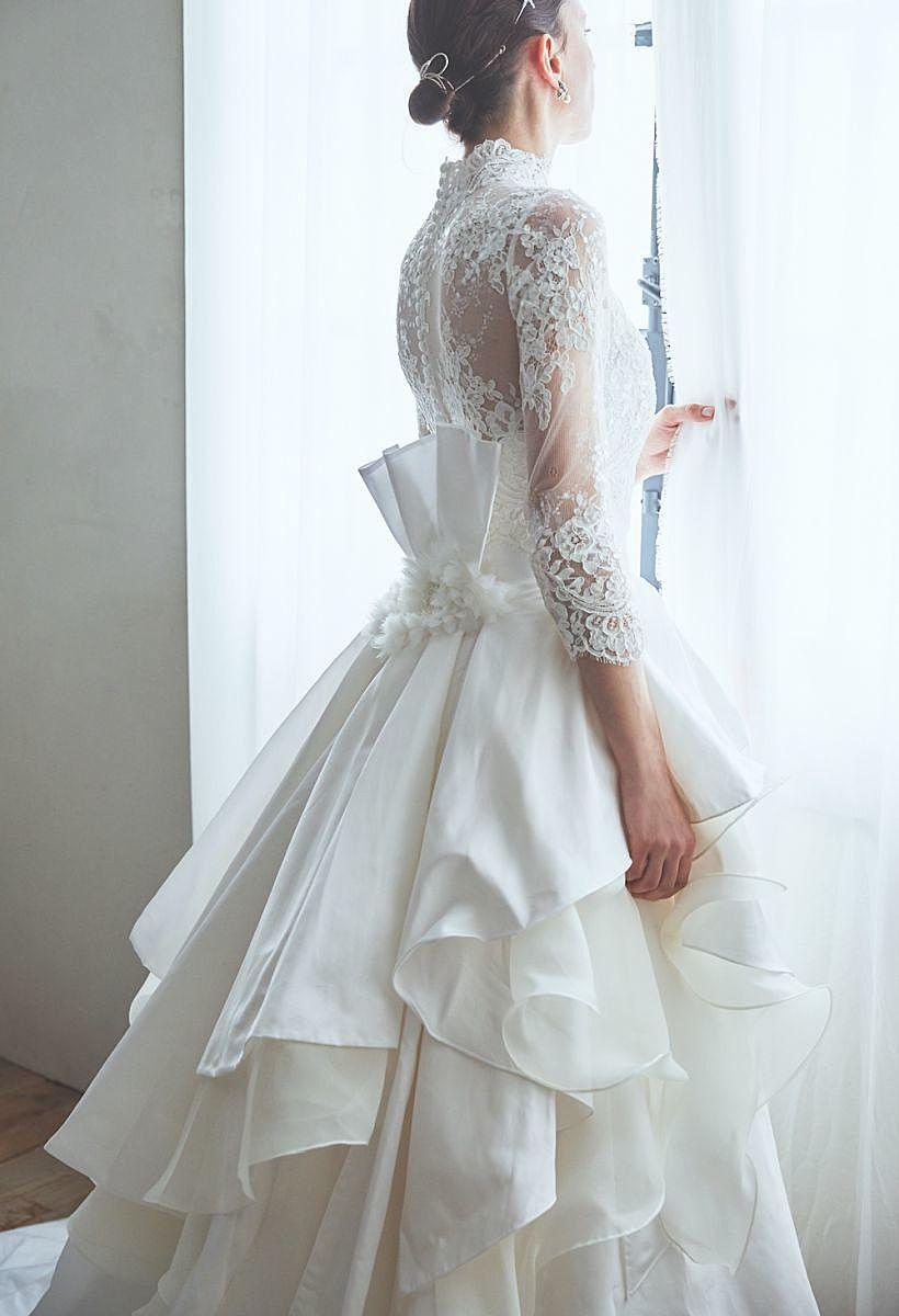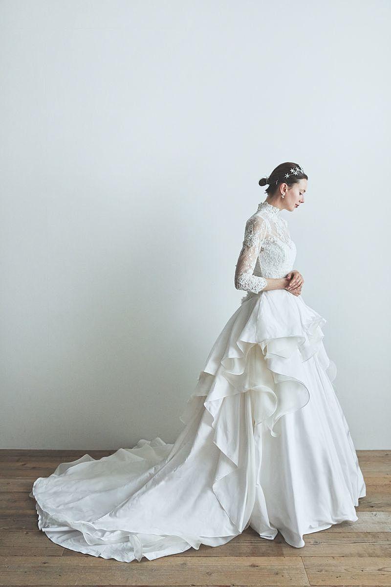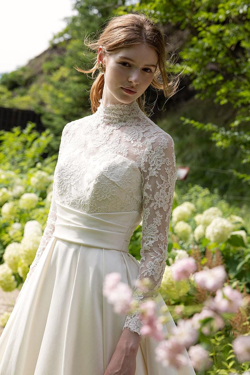 繊細なハイネックレースとボリュームスカートが放つ存在感は、王道の気品を纏う「ロイヤルクラシック」なスタイルがぴったり。