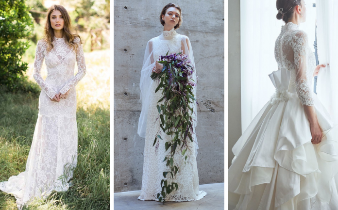 4. [Claire Pettibone] ハイネック×ロングスリーブのレースガウンドレス
