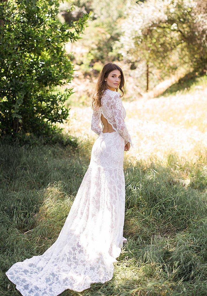 肌に溶け込むように馴染むフローラルレースに、自然体でリラックスしたムードをかけ合わせたマーメイドラインドレスは「クラシカルボヘミアン」な着こなしが似合います。