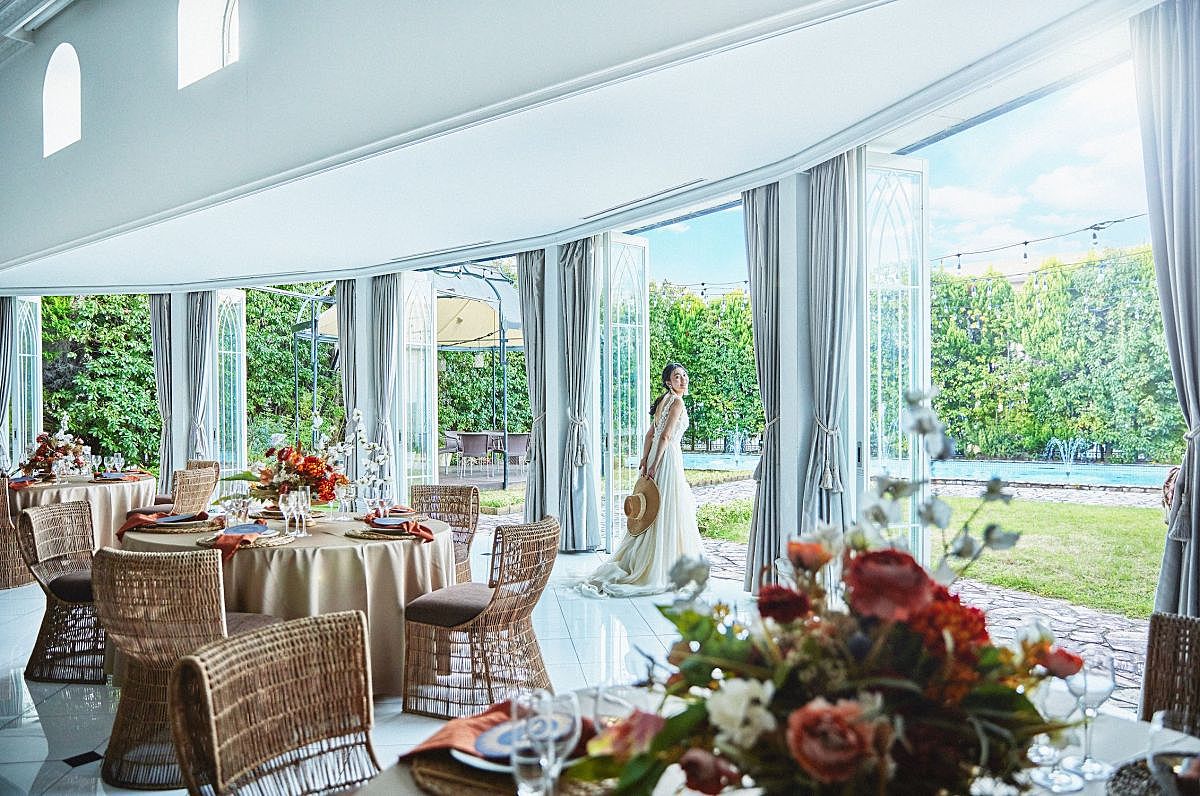 さらに、どの会場からもガーデンへ直結。青空の下でのフラワーシャワーやナイト演出、デザートビュッフェなど、自然を感じる開放的なおもてなしも人気です。