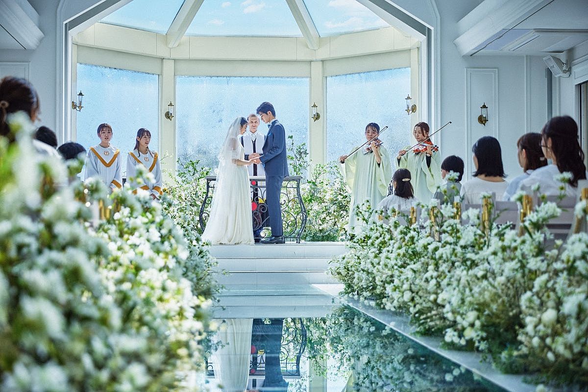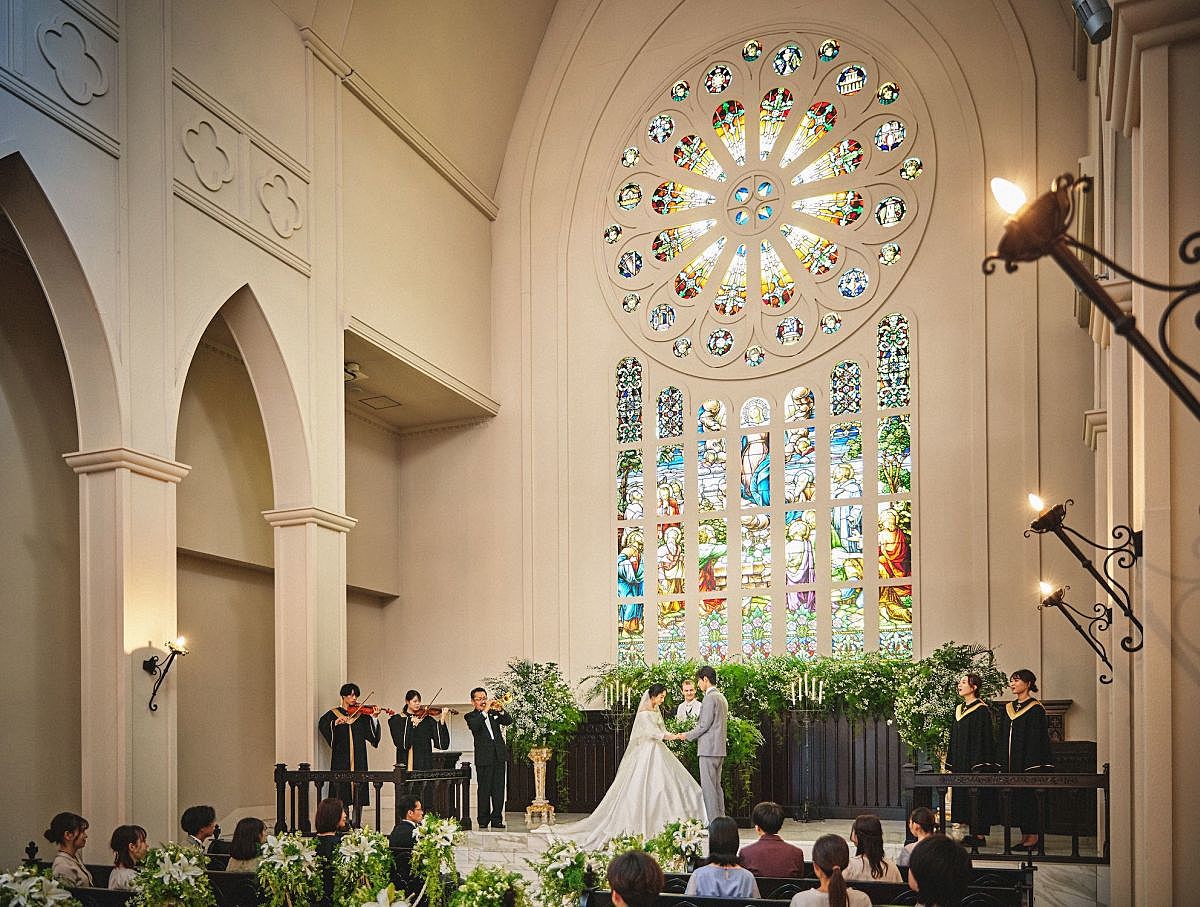 挙式は、まばゆい光が差し込む純白のチャペル「ディオセンデレ」と、壮麗なステンドグラスと22mのバージンロードが印象的な「ロイヤルグレース大聖堂」の2会場から選択可能。