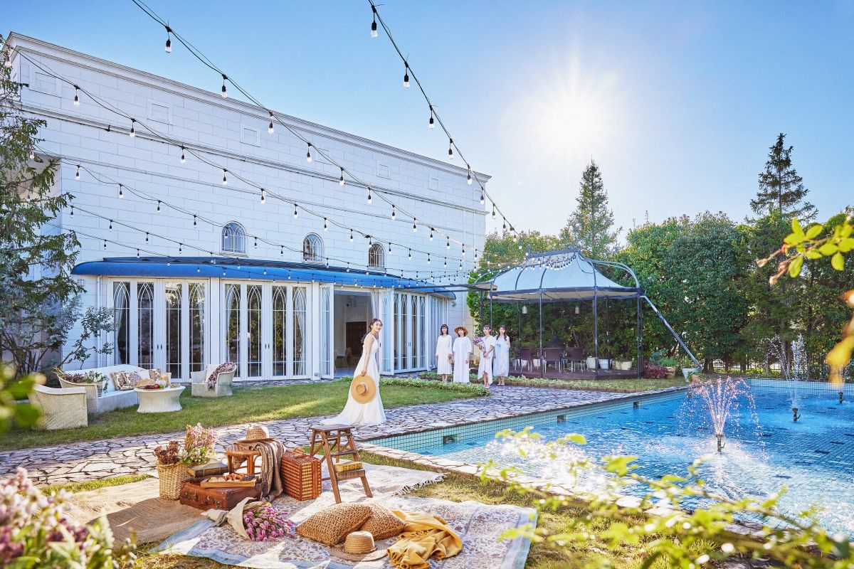 広大な敷地には、チャペルやパーティー会場、緑あふれるガーデンがゆったりと配置され、非日常感に包まれる一日を演出。