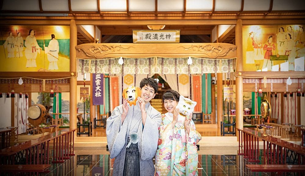 北陸唯一の出雲大社分院として、島根県出雲大社の御分霊を受け継ぐ由緒正しい神殿で、雅楽の生演奏に包まれた厳かな神前式が叶います。