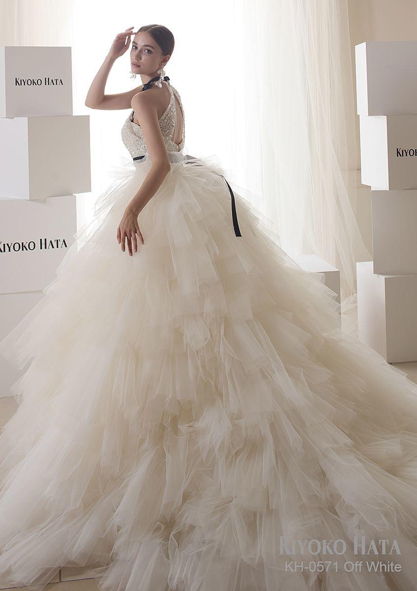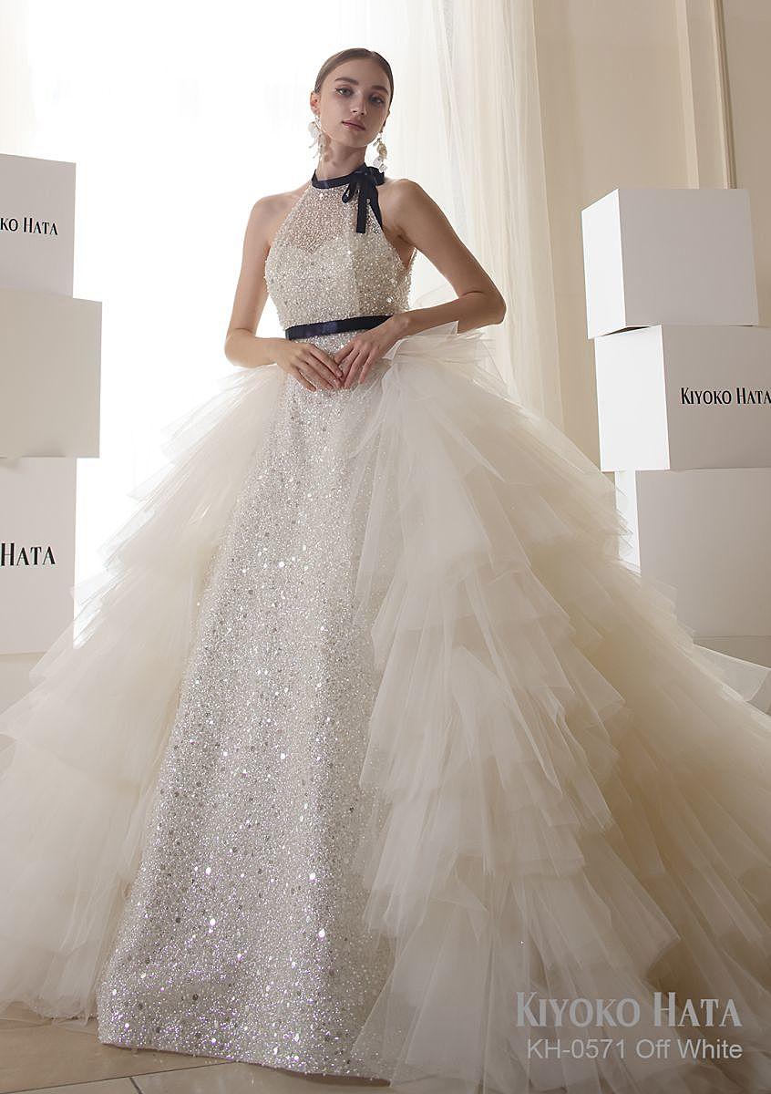 3. [KIYOKO HATA] ブラックリボンハイネックのグリッター×ティアードチュールドレス