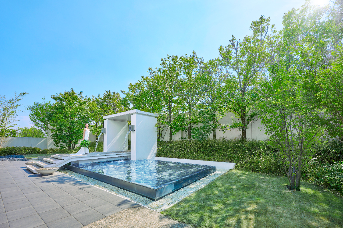 敷地内は至るところに水と緑が配された寛ぎの空間。上品で落ち着いた洗練空間は、ゲストに寛ぎのひとときをプレゼントしてくれるでしょう。