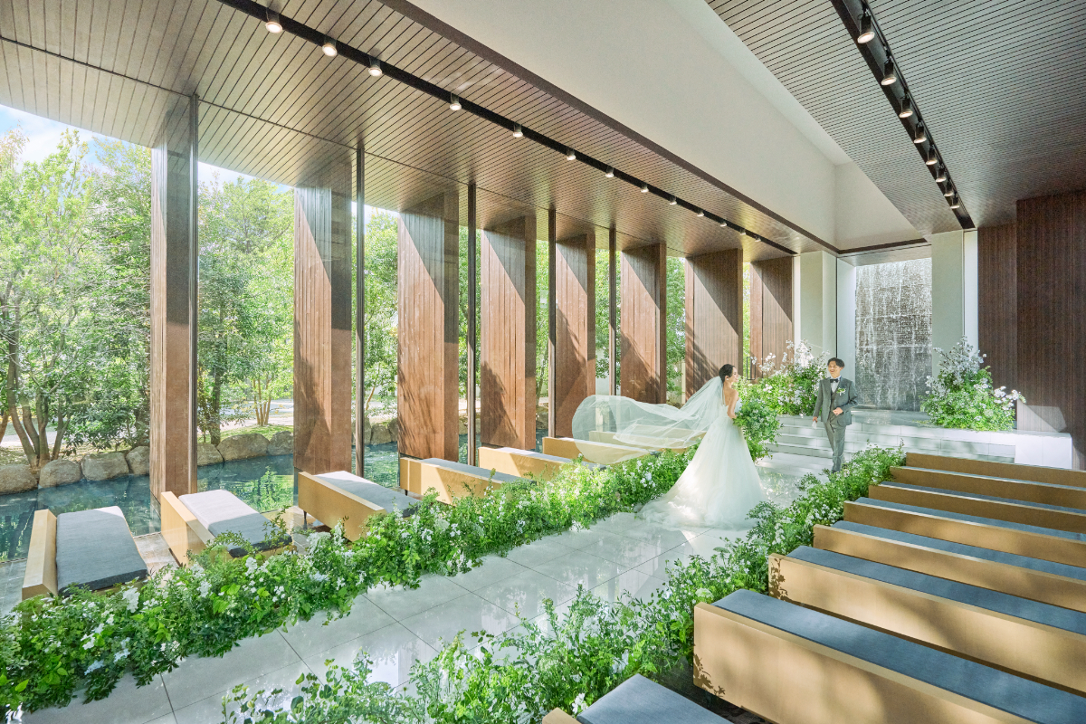 来館したゲストを迎えるのは、青々と緑が茂るエントランス。一歩足を踏み入れると静寂に包まれ、ゲストは一気に非日常の世界へと誘われます。